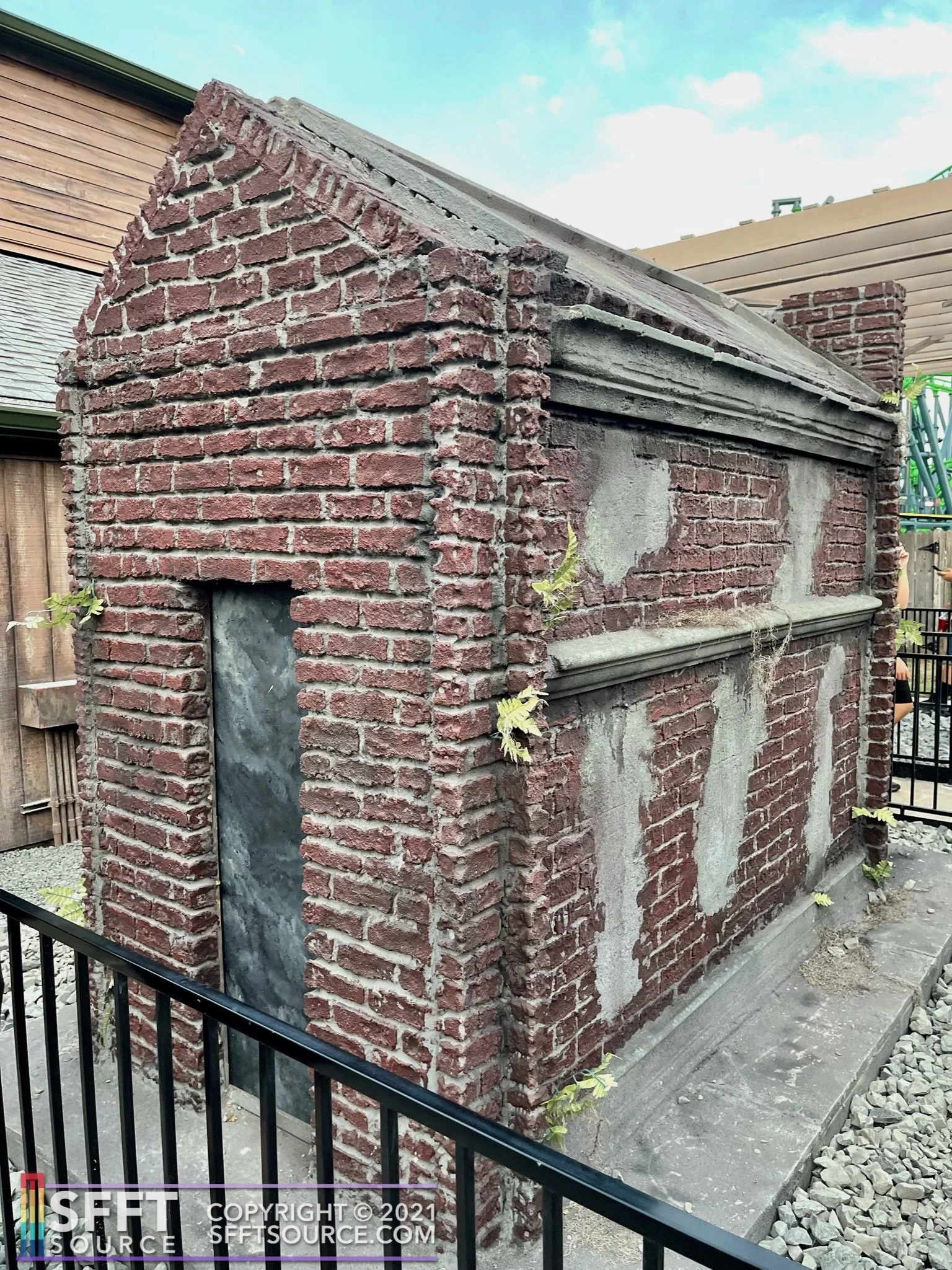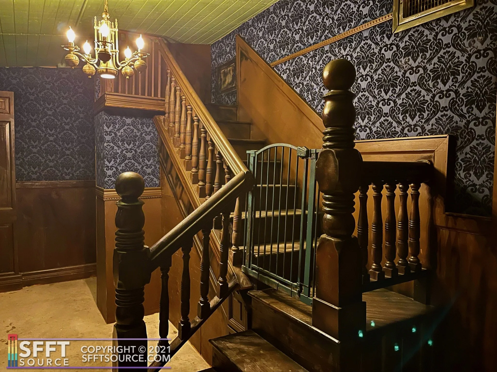 Poltergeist now also features an indoor queue. This new, spooky area includes a staircase to nowhere, haunting decor and portraits and more. The station has also been further enclosed, along with the attraction’s trains being refreshed with new paint and graphics. Finally, the ride structure itself is lit green to further enhance its new paint job.