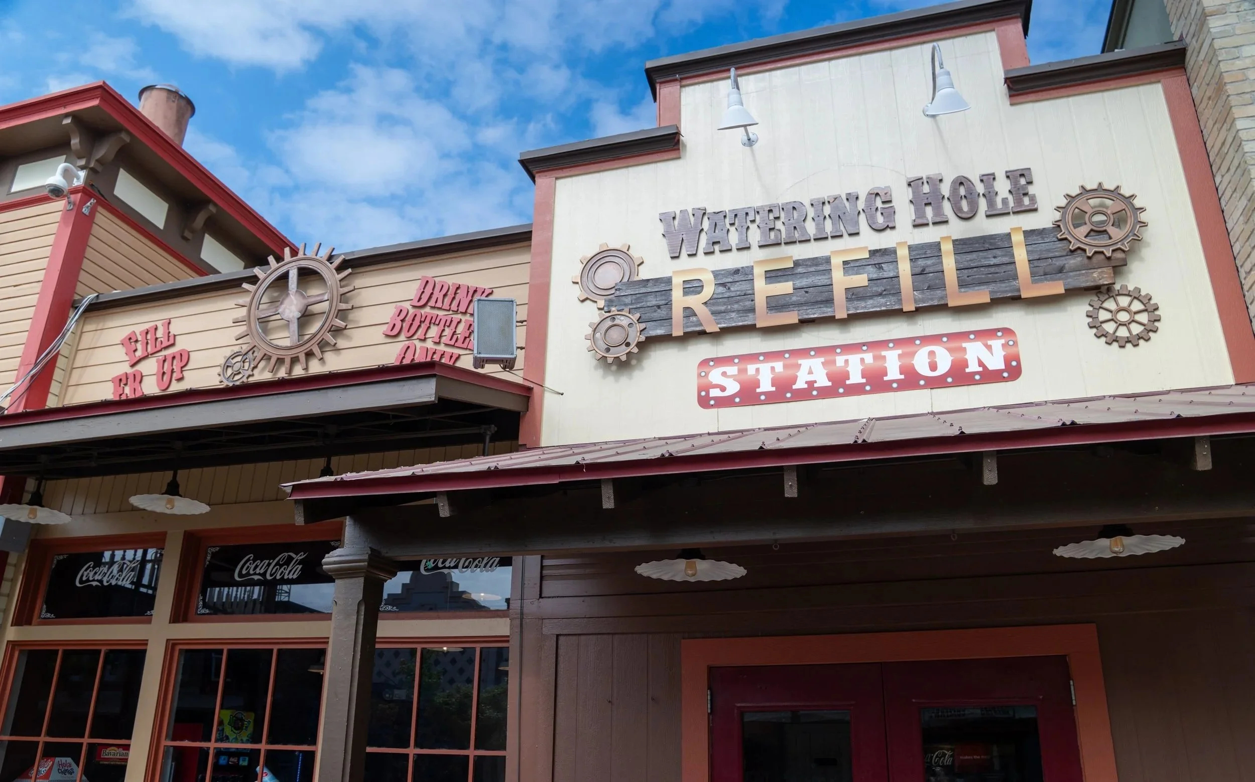 Located near Chop Six, the Watering Hole Refill Station features self-serve machines with several soda offerings, along with other frozen beverages. Prior to 2022, this location was home to a Coca-Cola Freestyle refill station.