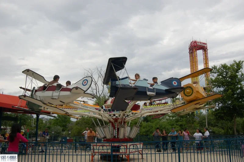 A Schwarzkopf Enterprise attraction that was relocated to Fiesta Texas from Six Flags Over Texas (Spinnaker). Dare Devil Dive Flying Machines now occupies the location.