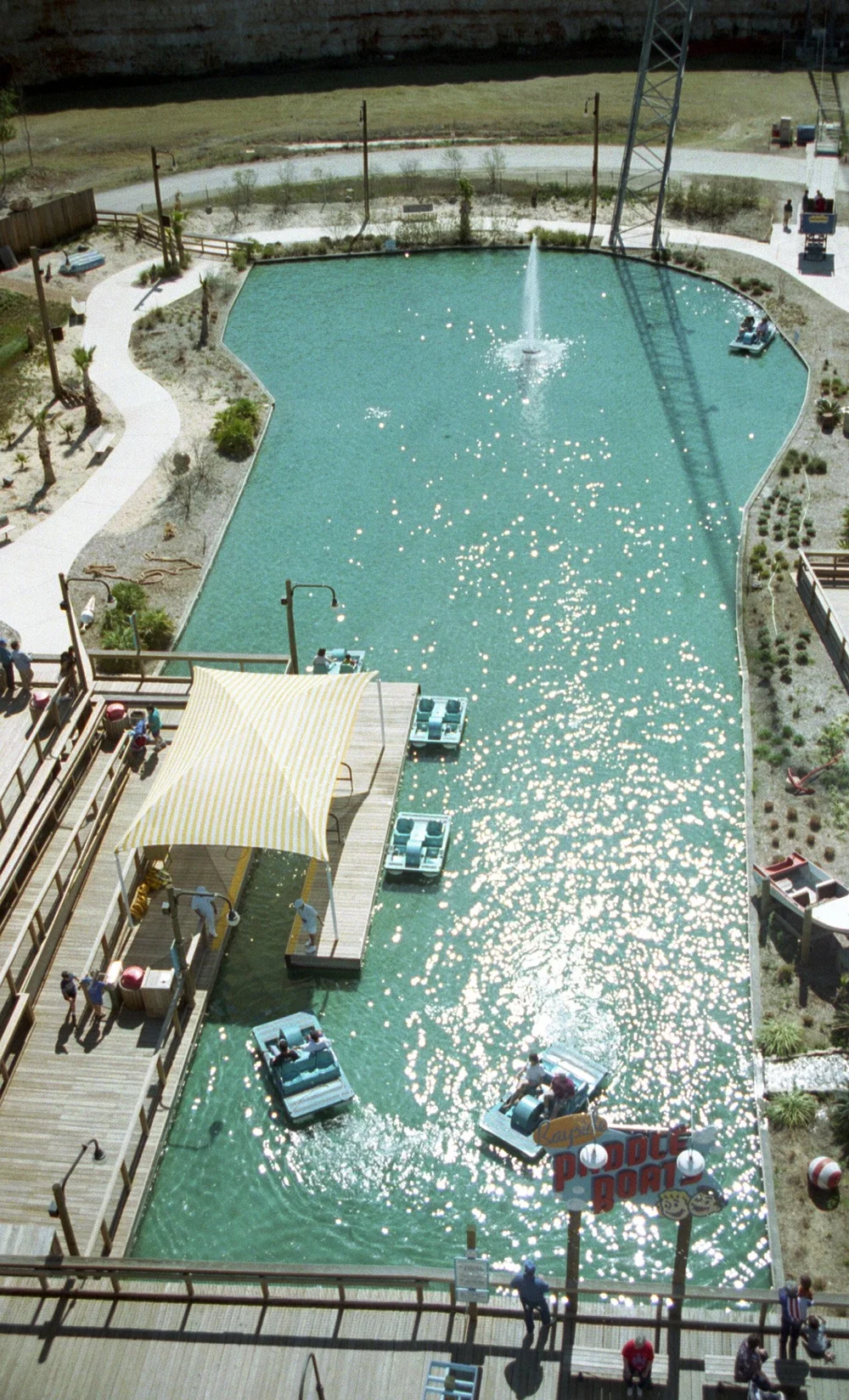 A paddle boats attraction that once occupied the current Hurricane Force 5 location.