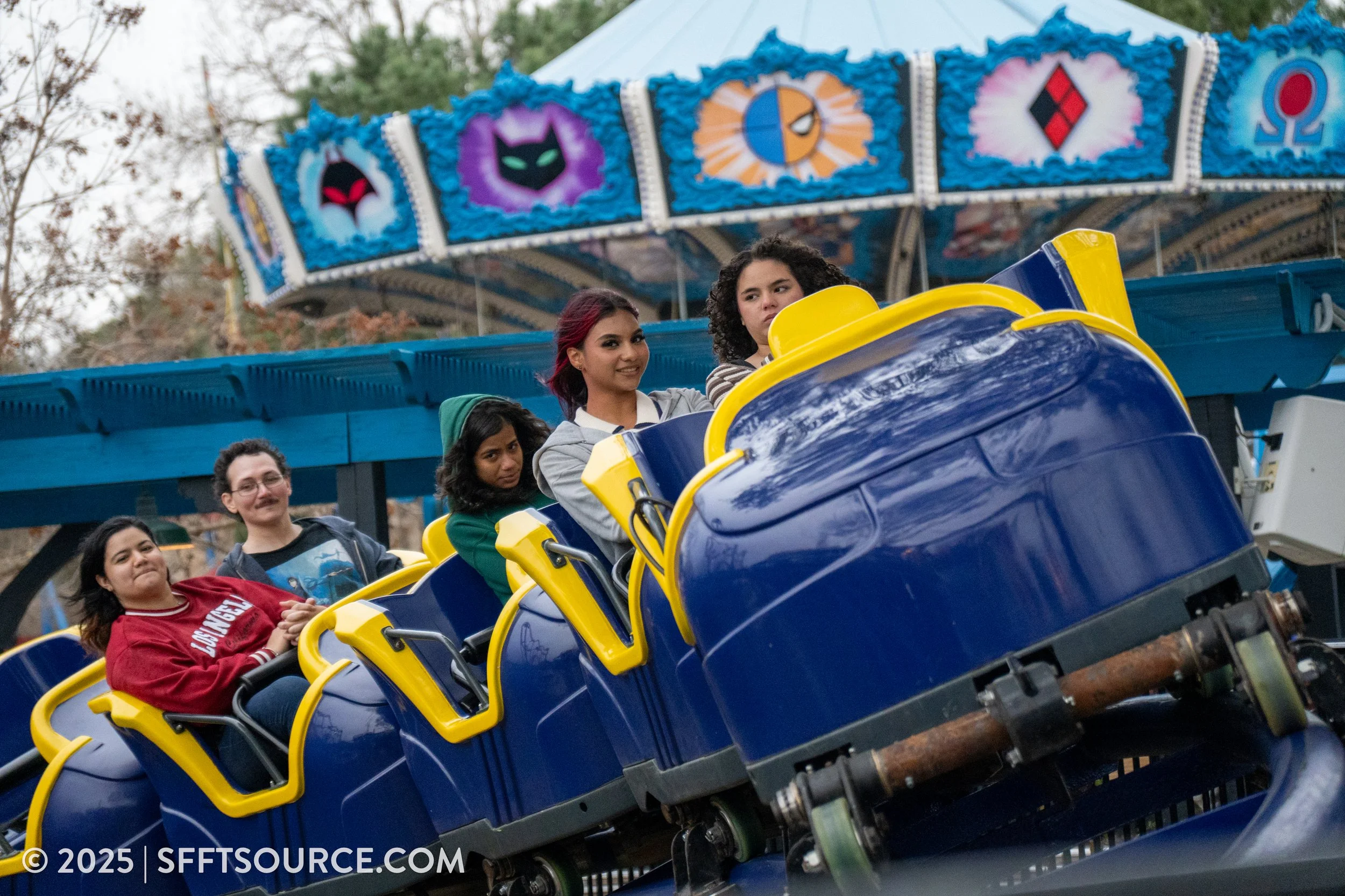 DC Comics-themed attraction, spinning riders on multiple axes