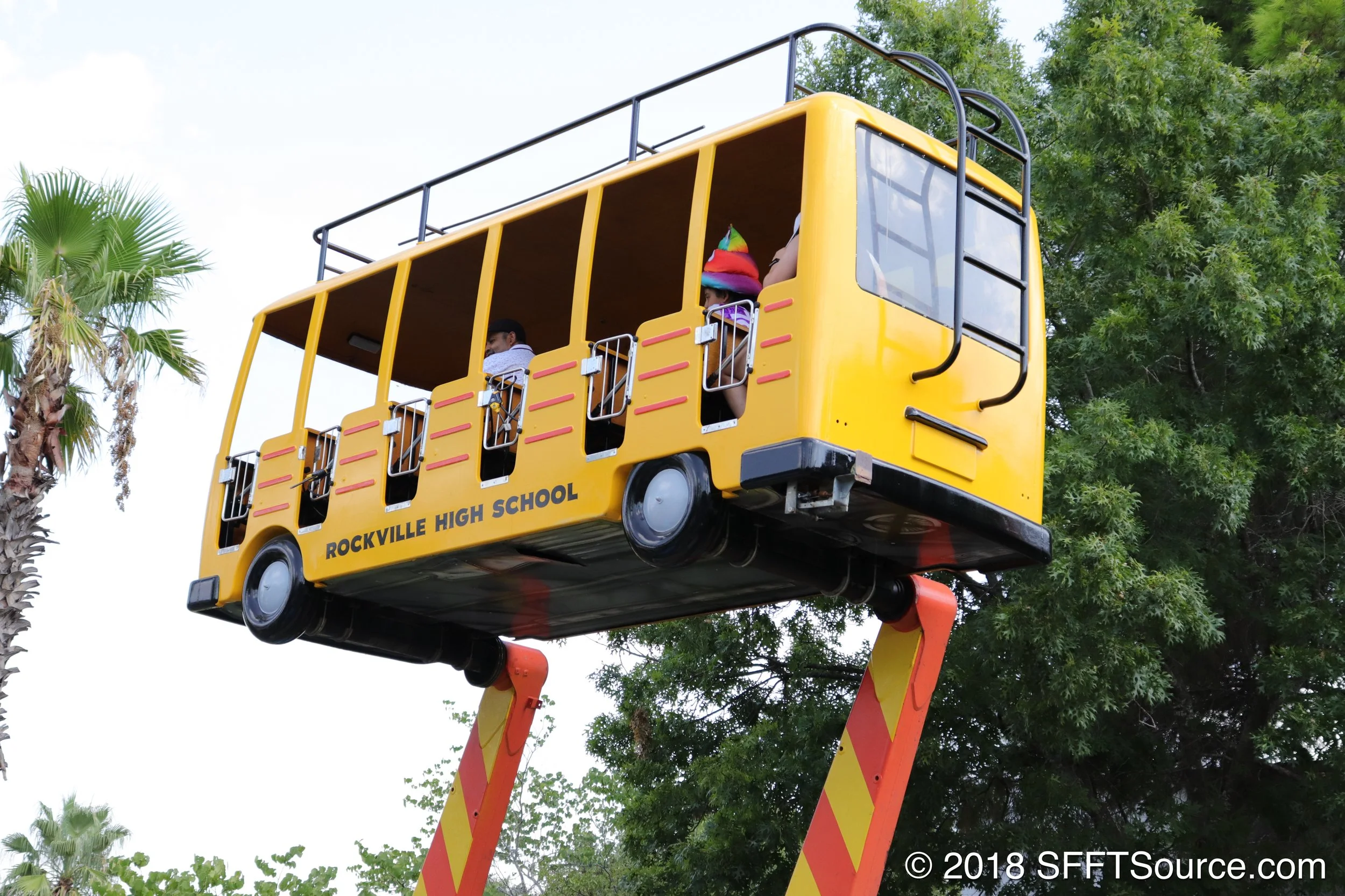 Daffy's School Bus Express is one of two smaller children's attractions found in the Rockville park area. Guests climb aboard a bus-themed ride vehicle and go for a calming spin. The attraction is located next to Rockville High School. In 1999, Fiesta Texas installed several rides and attractions to expand their arsenal of offerings to guests. In an initiative to increase attendance, several children’s attractions were added, Daffy’s School Bus Express being one. Various other children’s rides added during this expansion include Taz’s Tornado, Kinderstein, Yosemite Sam’s Wacky Wagons and Foghorn Leghorn’s Barnyard Railway.