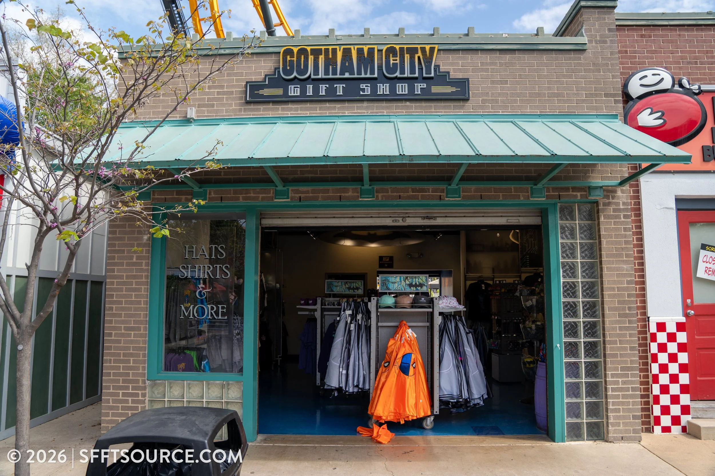 Added in 2015, Gotham City Gift Shop is located in Rockville at the exit of Batman: The Ride. When Fiesta Texas opened in 1992, this location was the Pool Hall Games & Arcade.